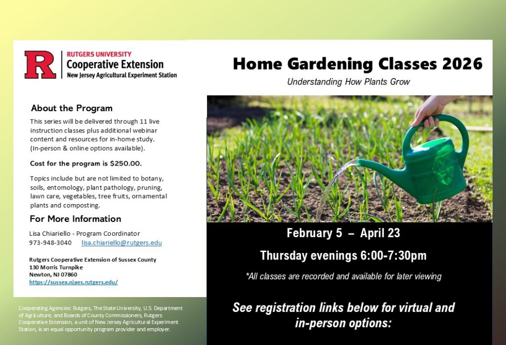 In-Person class location: Rutgers Cooperative Extension, 130 Morris Turnpike, Newton, NJ